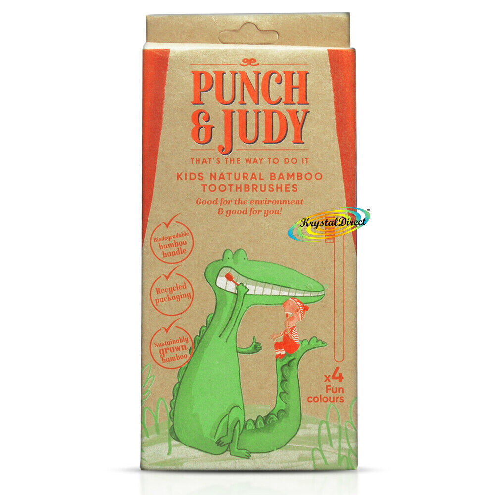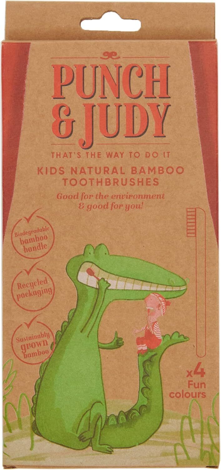 Punch & Judy Kids Organic Biodegradable Bamboo Toothbrushes 4pcs Fun Colours