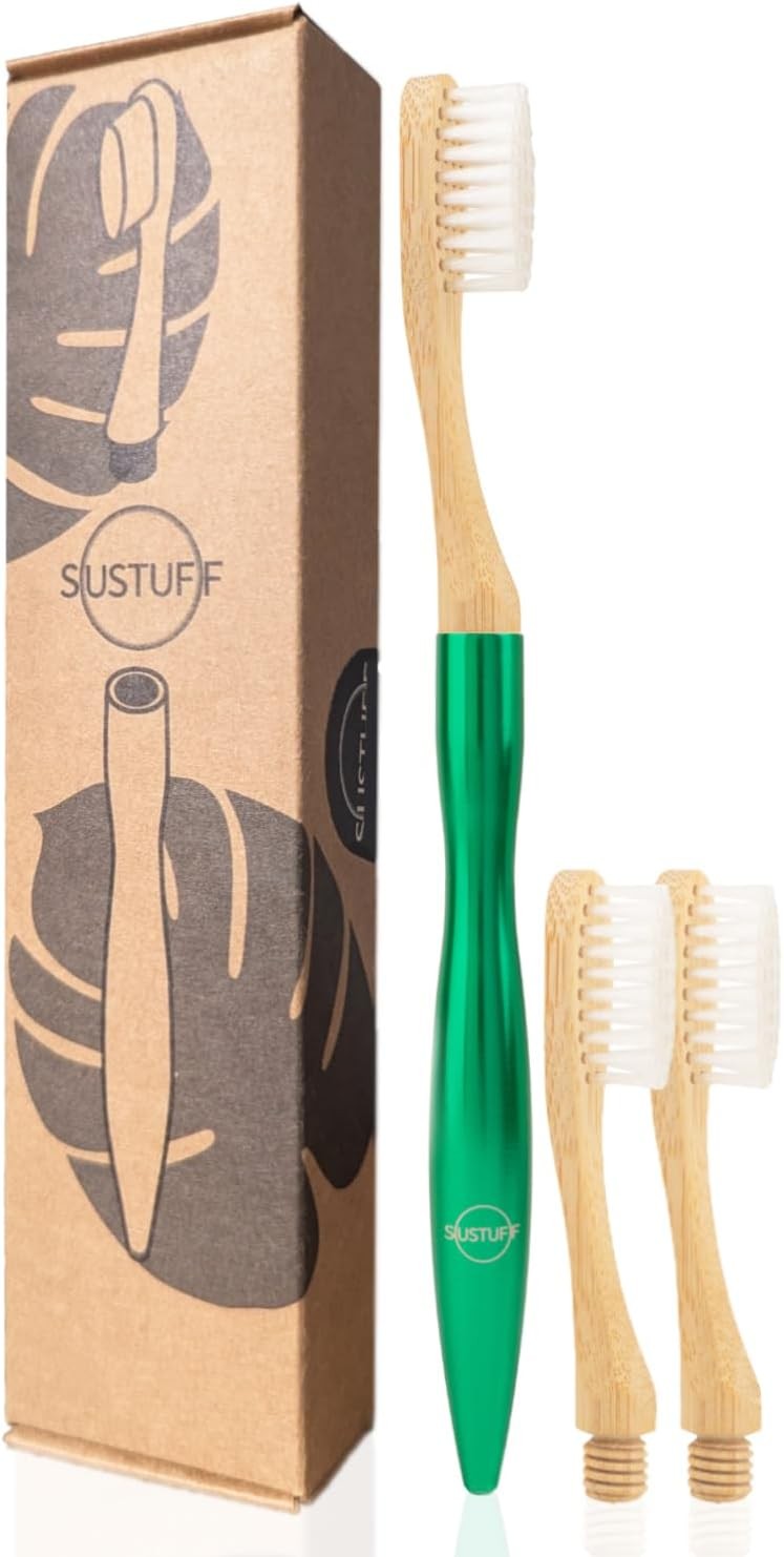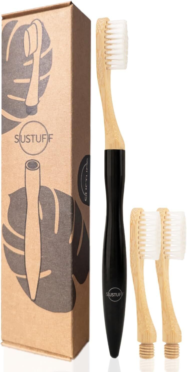 Sustuff | 3 Bamboo Toothbrushes with Medium Plant-Based Bristles | Reusable, Re