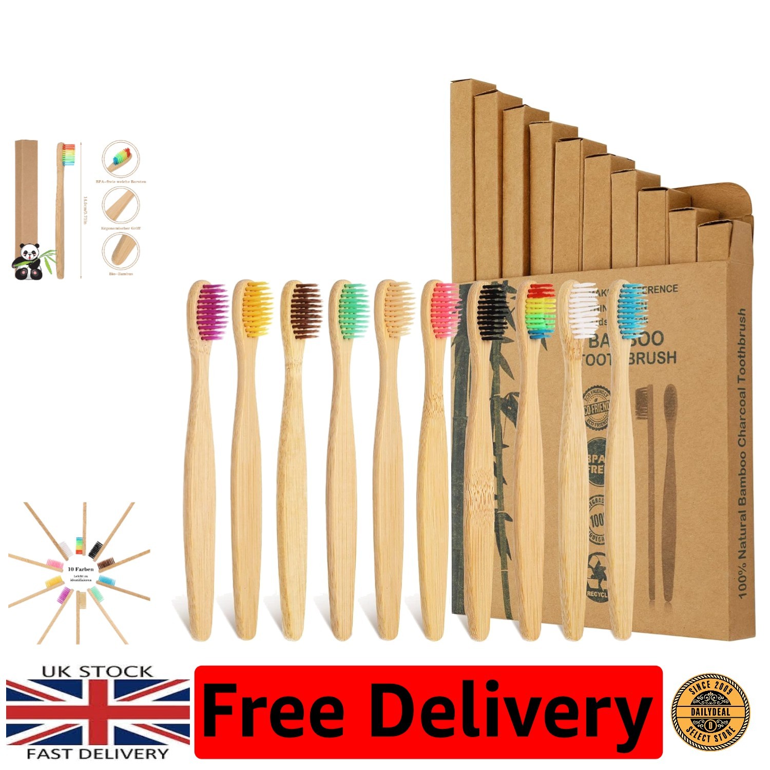 Bamboo Toothbrushes | 10 Pack | BPA Free Medium Bristles | Eco-Friendly & Biode