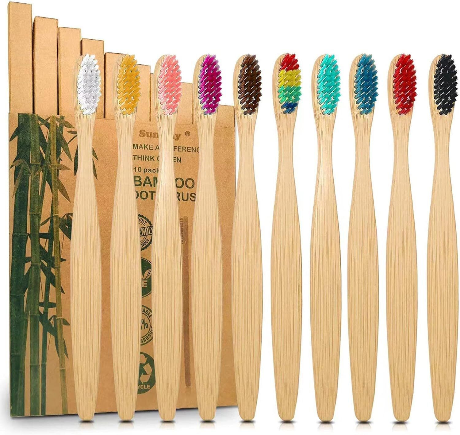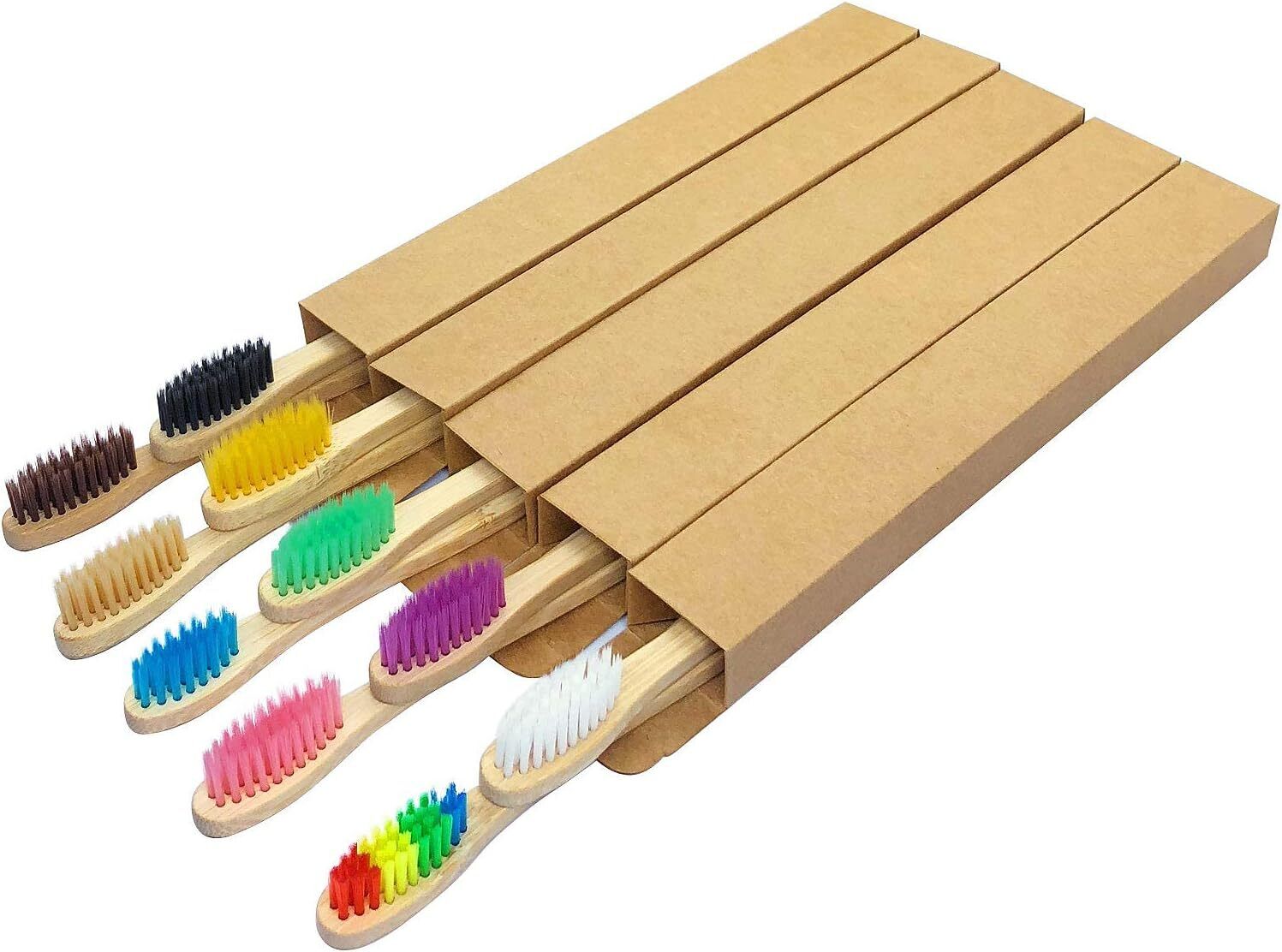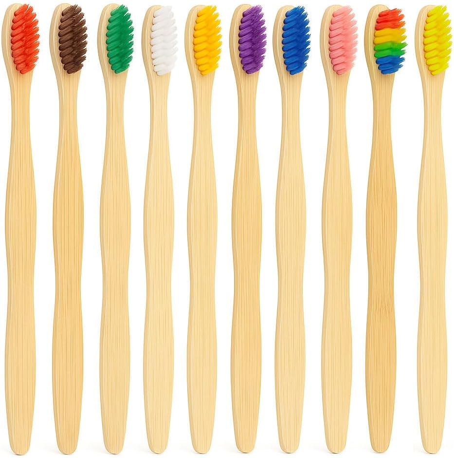 10 Color Bamboo Toothbrushes Multipack | Soft Bristles Wooden Toothbrush for Ad