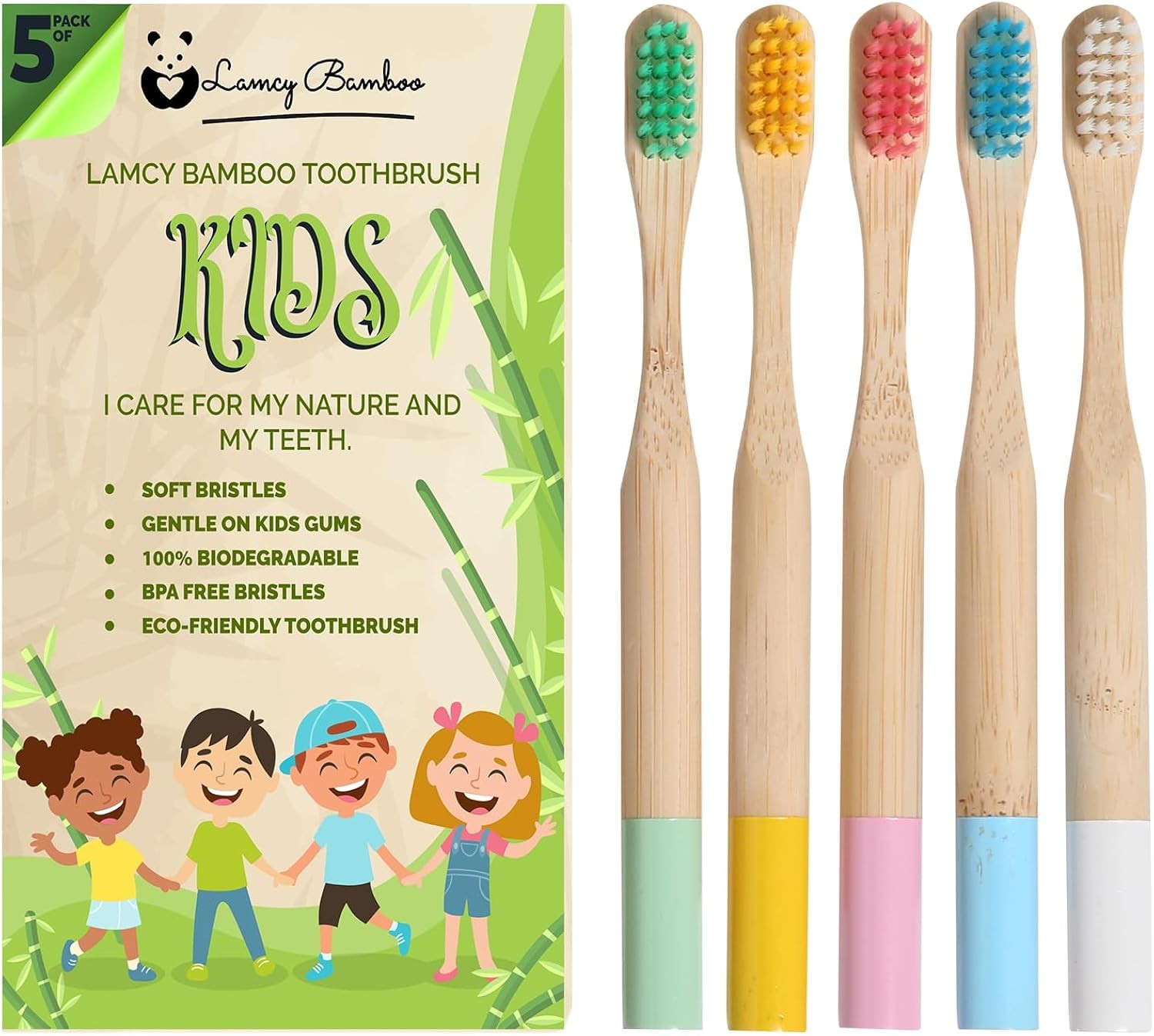 Kids Bamboo Toothbrushes 5 Pack Eco-Friendly Soft Bristles Biodegradable