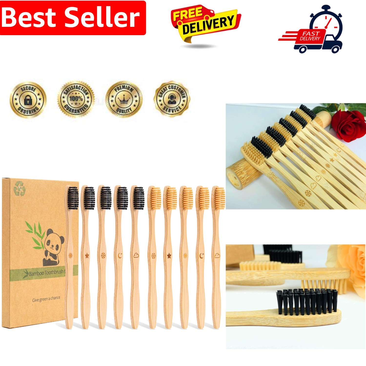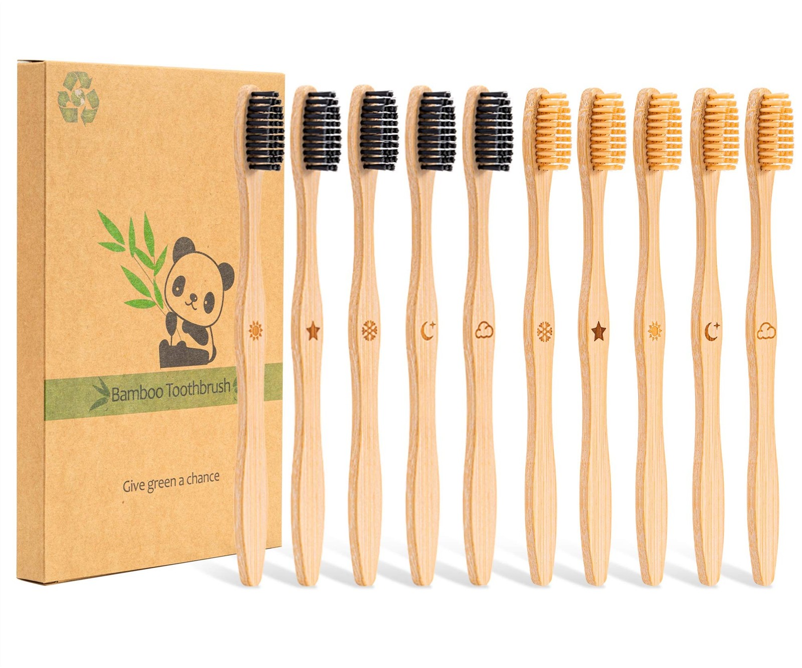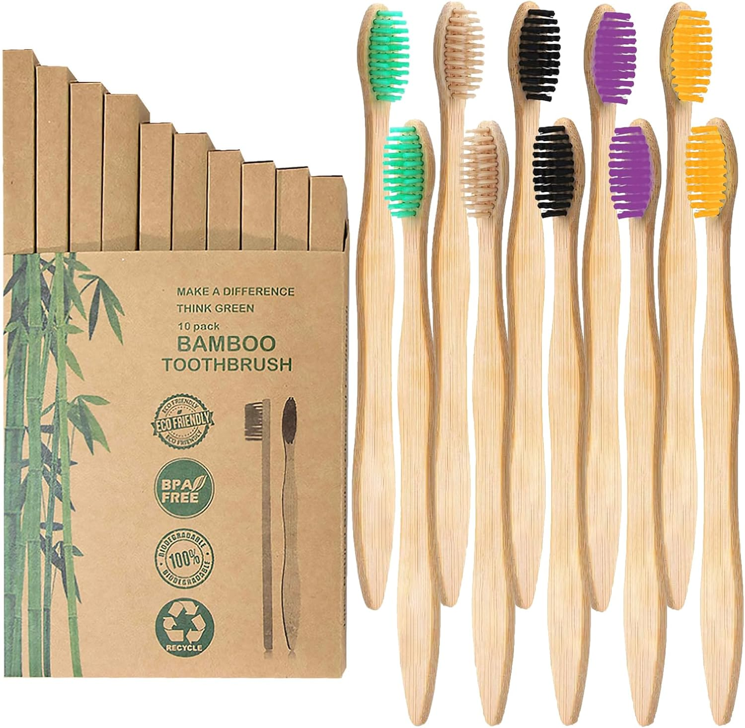 10 Pack Natural Bamboo Toothbrushes,Organic Biodegradable Handle Eco-Friendly N