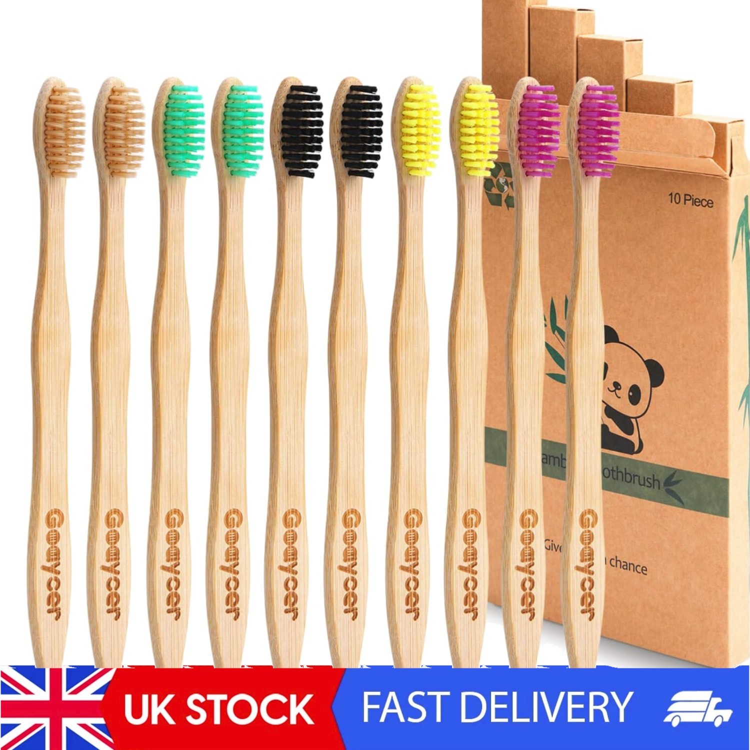 Goaycer Bamboo Toothbrushes Medium Bristles - Family 10 Pack Eco Friendly Biodegradable Organic Premium Wooden Toothbrush