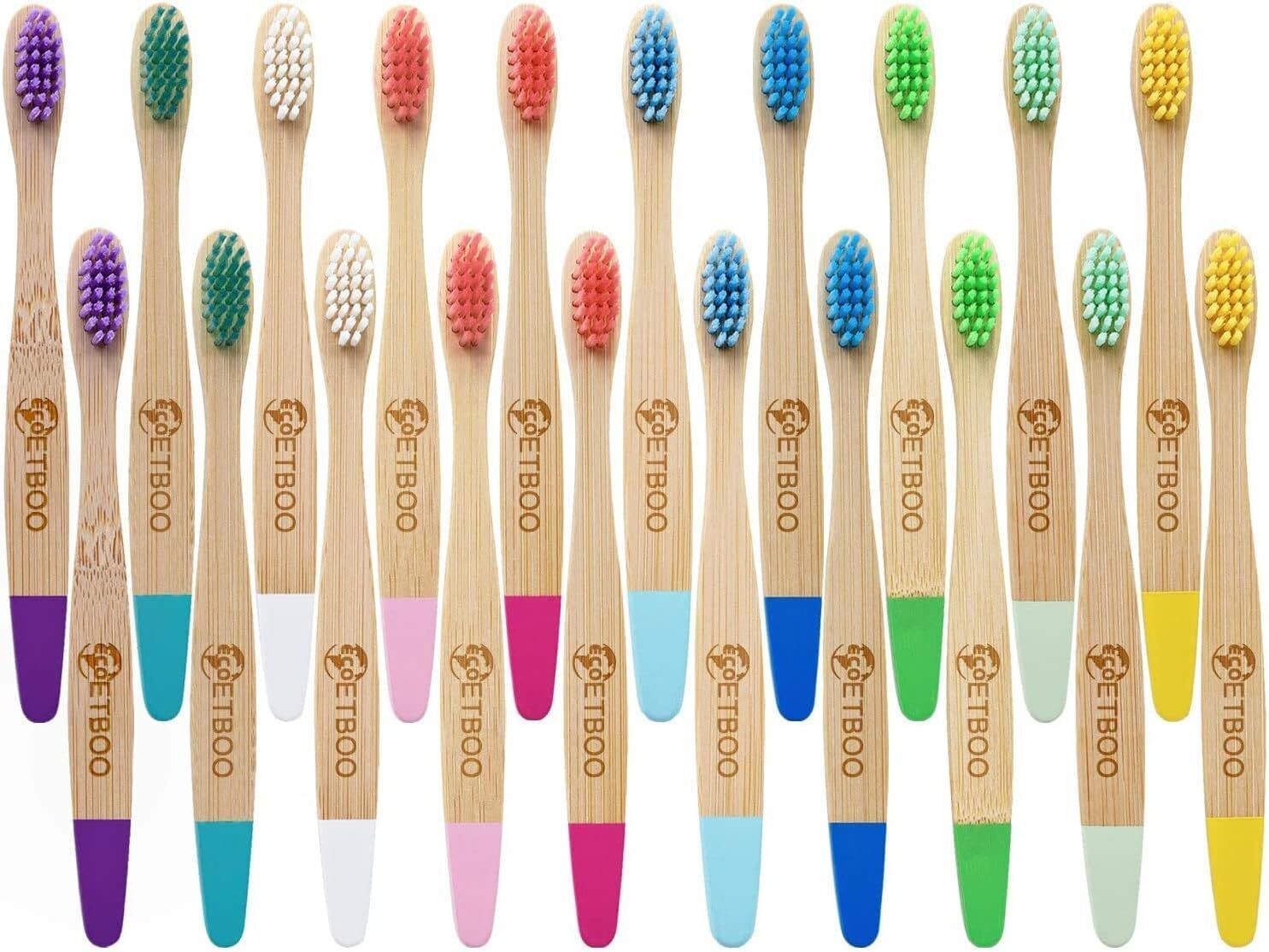 ECOETBOO Kids Bamboo Toothbrushes & Adults Totally 20 Pack, Soft Bristles Eco Toothbrushes, Biodegradable Wooden Handle Chidren Tooth