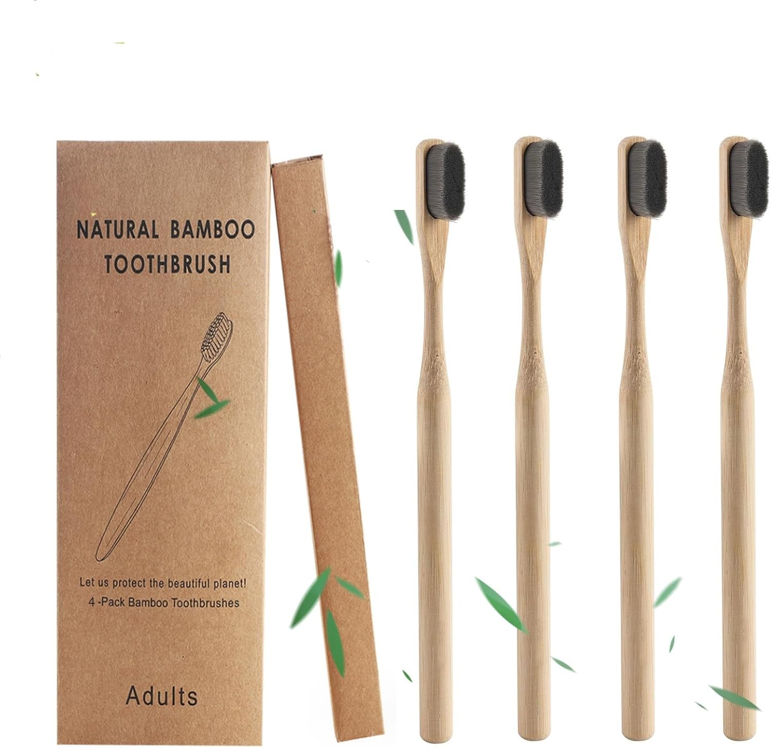 4 Pcs Bamboo Toothbrush with Soft Bristles, Bamboo Micro-Nano Toothbrushes, Nat