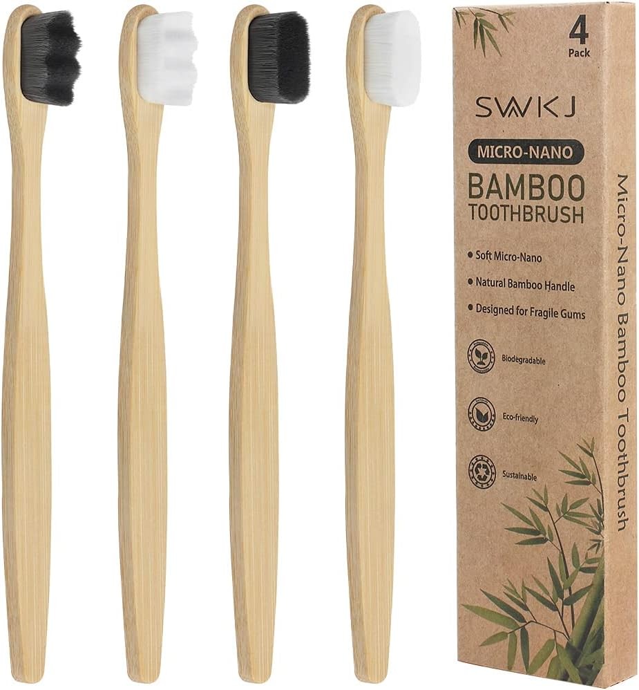 4 Pcs Soft Bamboo Micro-Nano Toothbrushes, Extra Soft Toothbrush with 20000 Bri