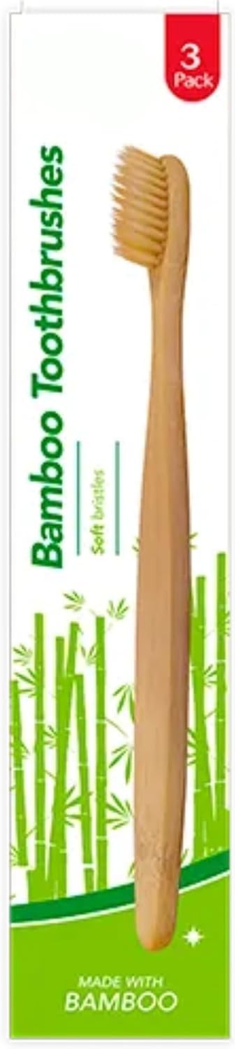3-Pack Eco-Friendly Bamboo Toothbrushes – Organic, Biodegradable BPA-Free Uk SLR