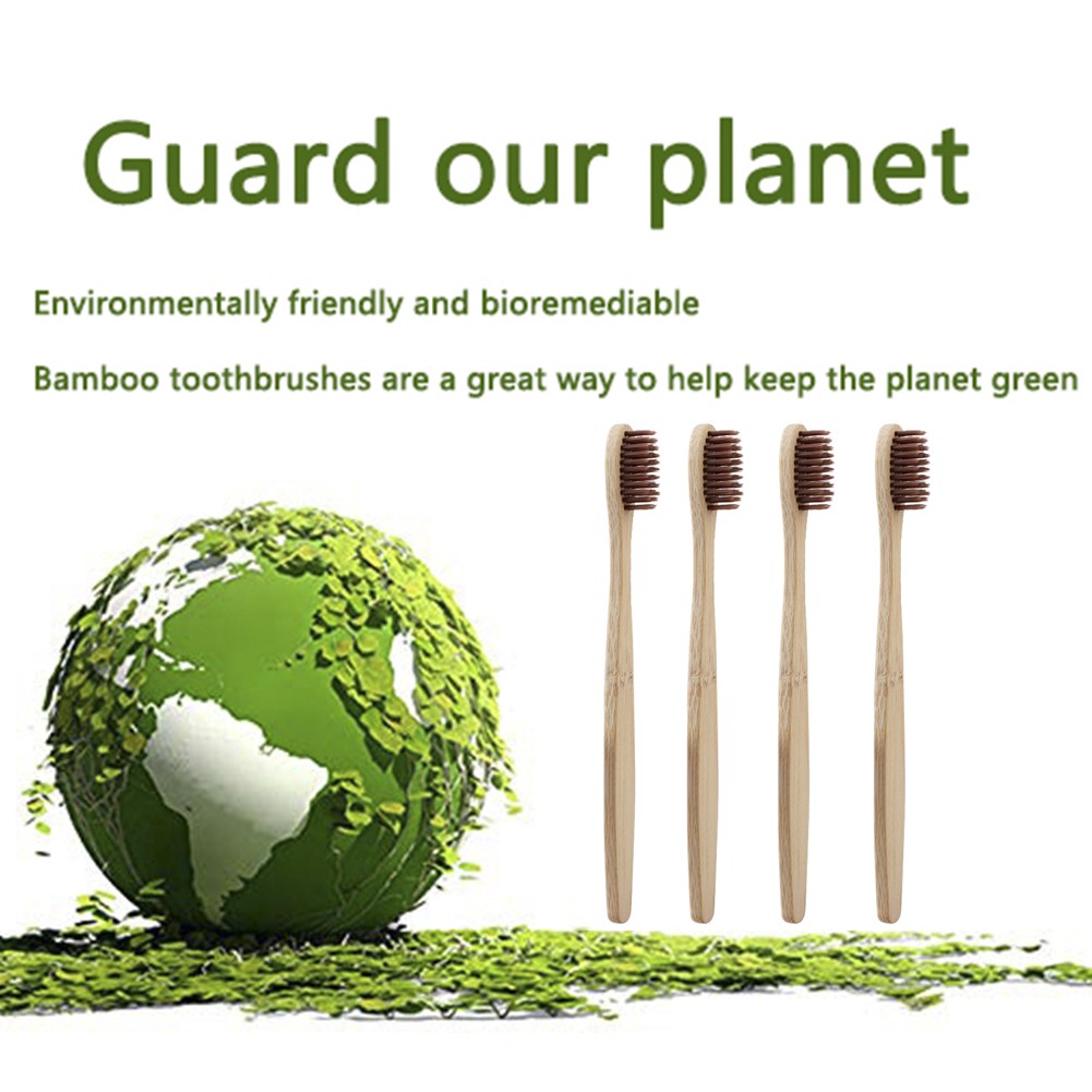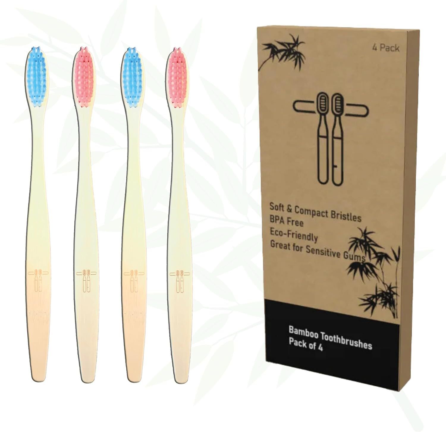 Bamboo Toothbrushes, 4 Pcs Soft Bristle Toothbrushes, Eco-Friendly Wooden Tooth