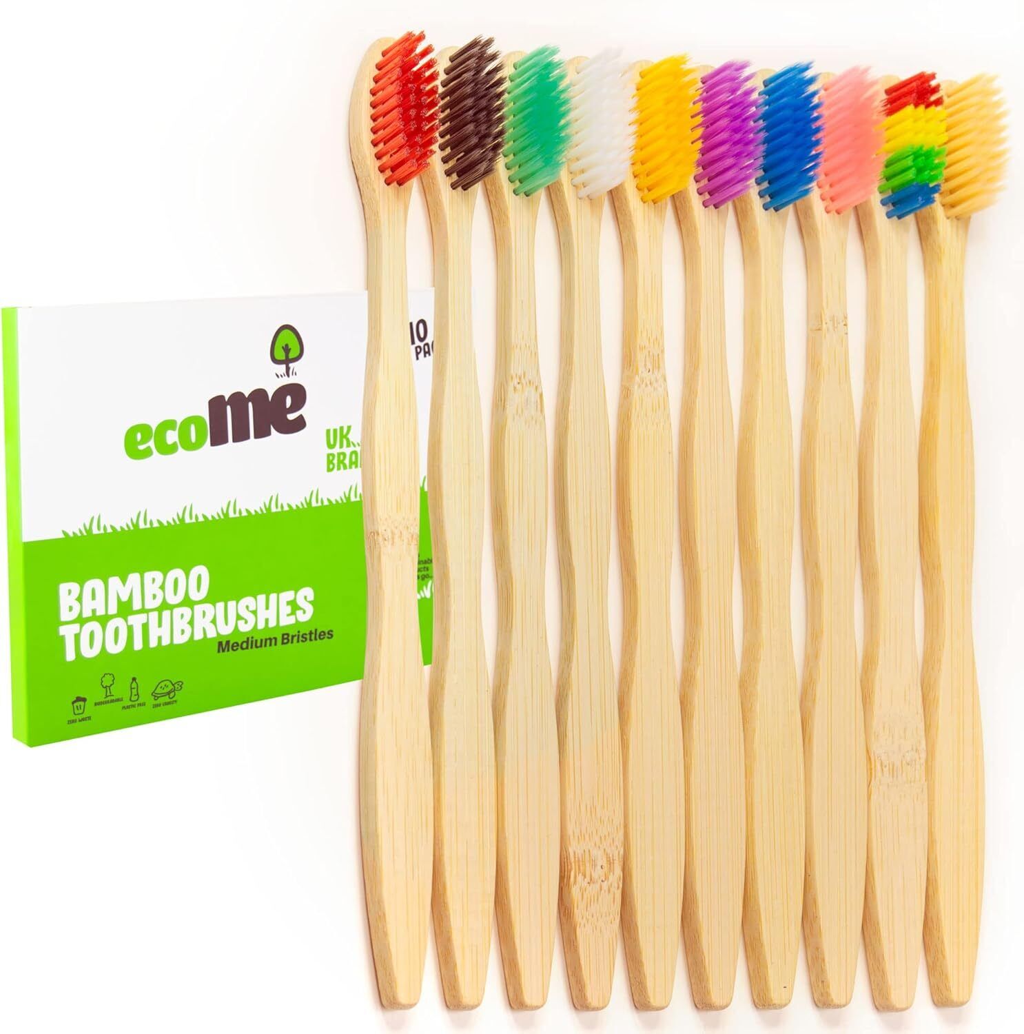 Bamboo Toothbrushes | 10 Pack | BPA Free Medium Bristles | Eco-Friendly & Biodeg