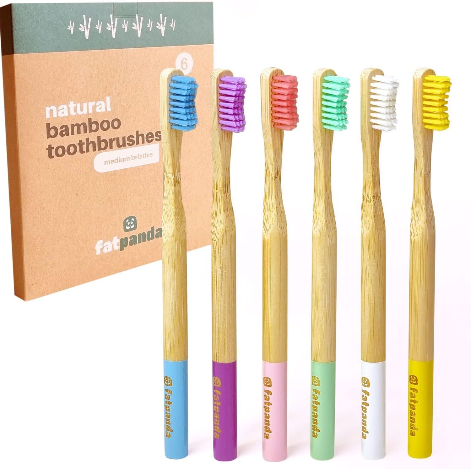 Bamboo Toothbrushes | Family Pack of 5 | Adult Medium Bristles | Natural Biodeg