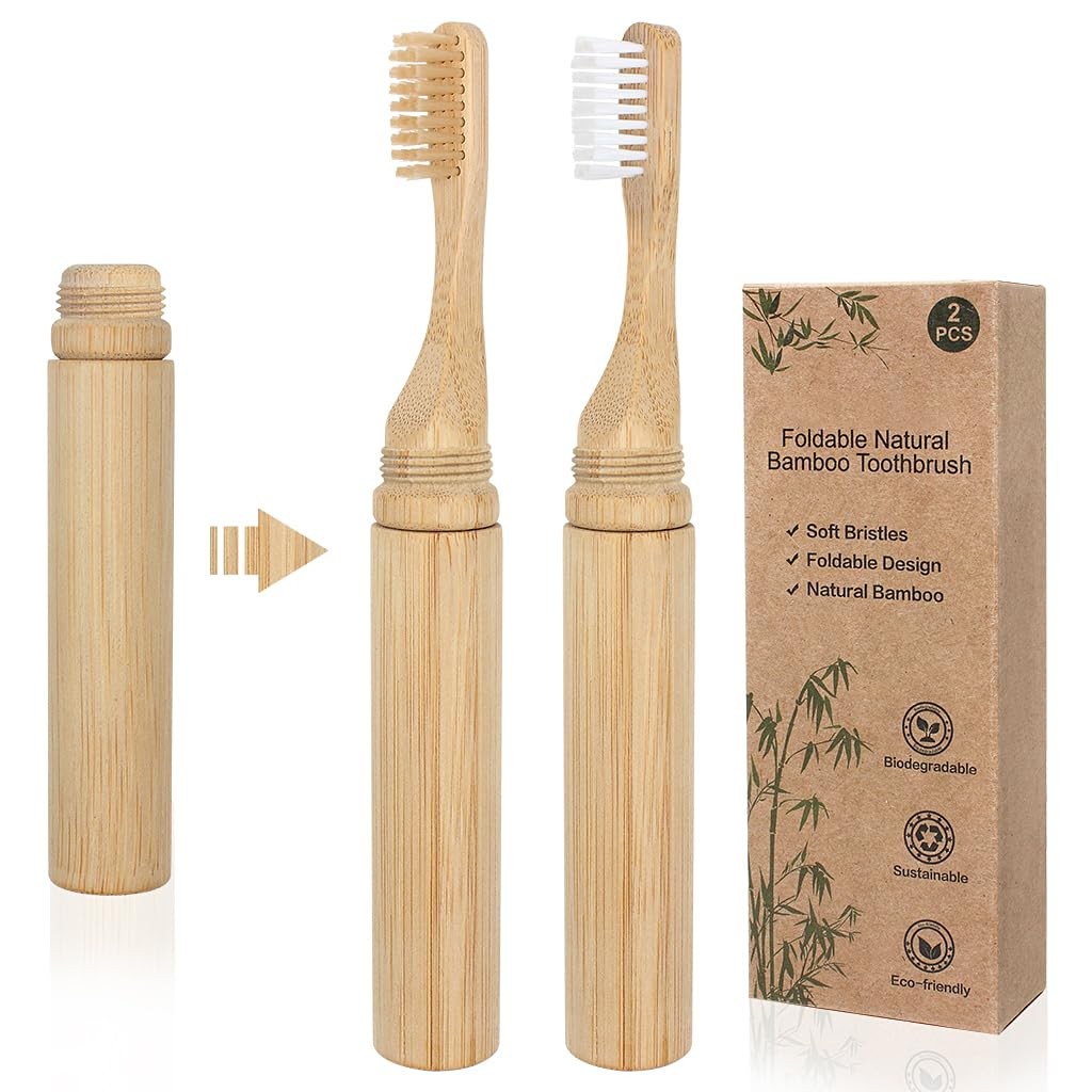 SWKJ Portable Bamboo Toothbrushes, 2 Pcs Organic 1 count (Pack of 2), White