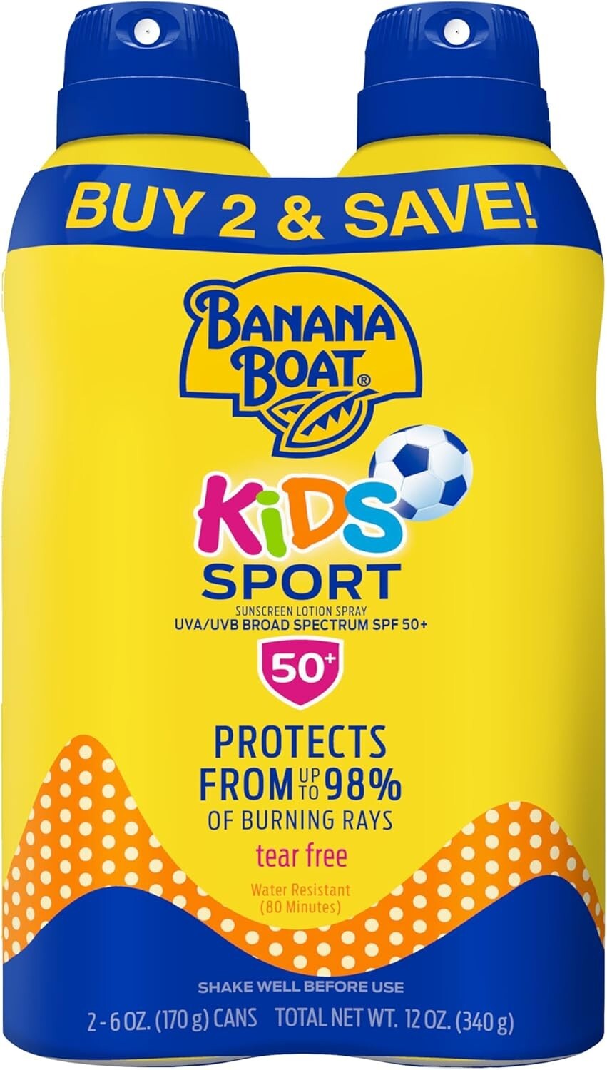 Banana Boat Sunscreen Kids Sport, Tear-Free Broad Spectrum Sunscreen Spray - SPF 50-6 Ounce Twin Pack
