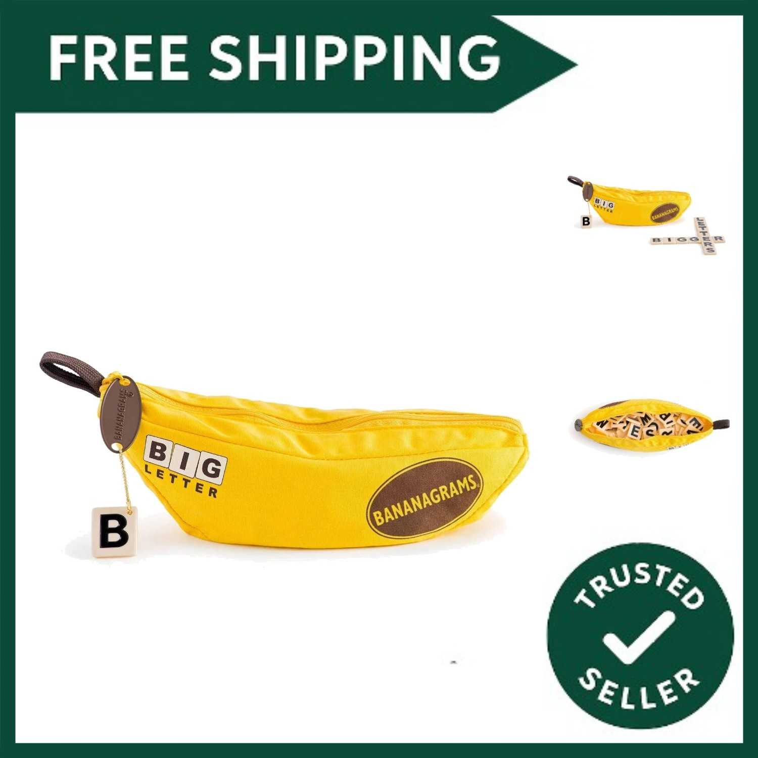 BANANAGRAMS | Bananagrams Big Letter | Word Game | Ages 7+ | 1-8 Players | 10+ Minutes Playing Time
