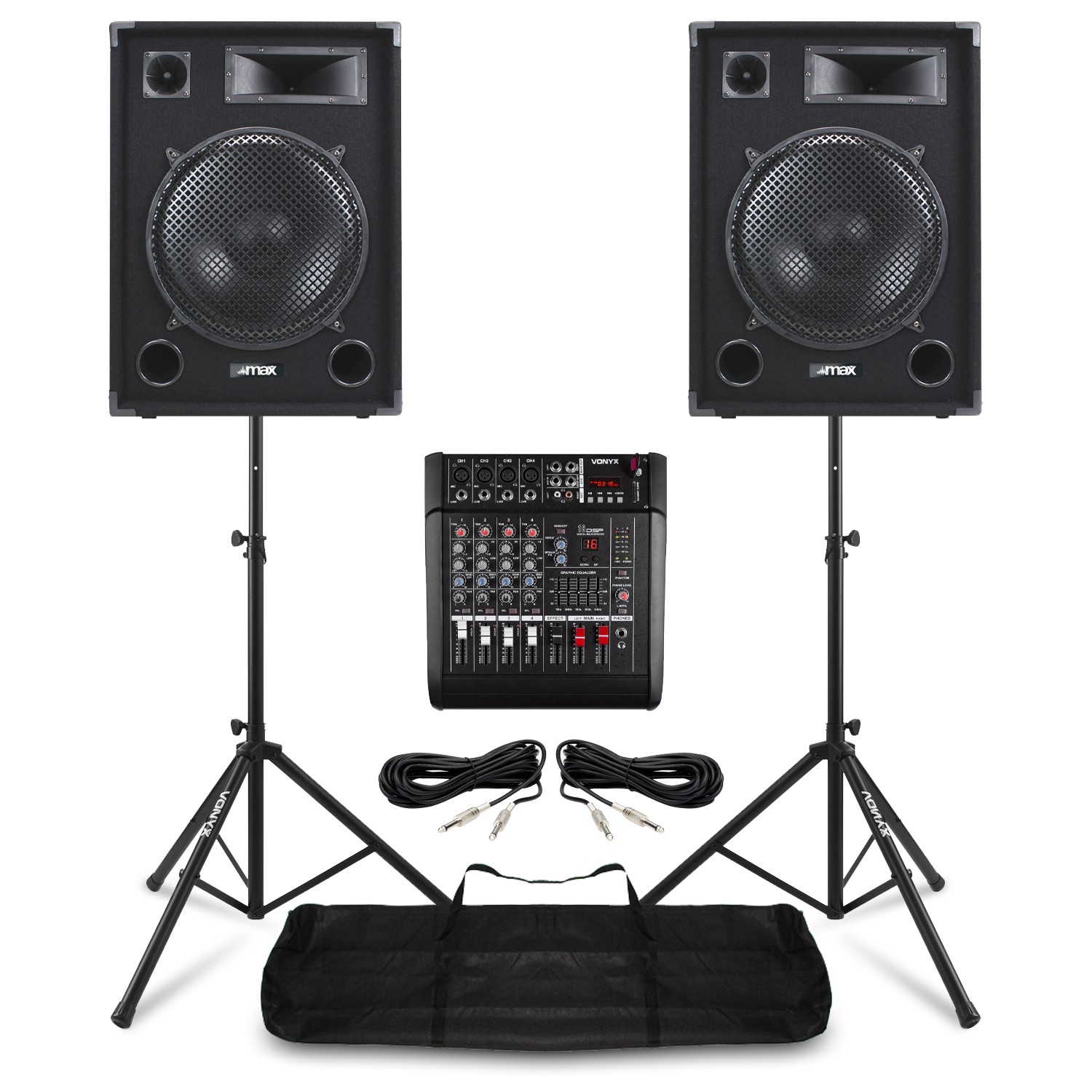 Vonyx 15" PA System Package - Live Band Speakers, Mixer & Stands