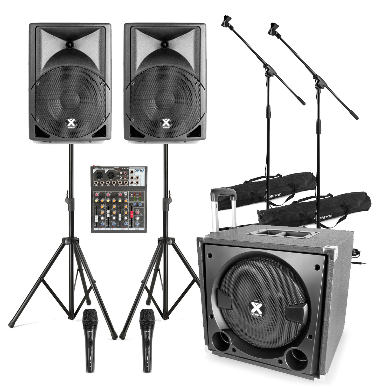 Vonyx 15" PA System Package - Live Band Speakers, Mixer, Mics & Stands