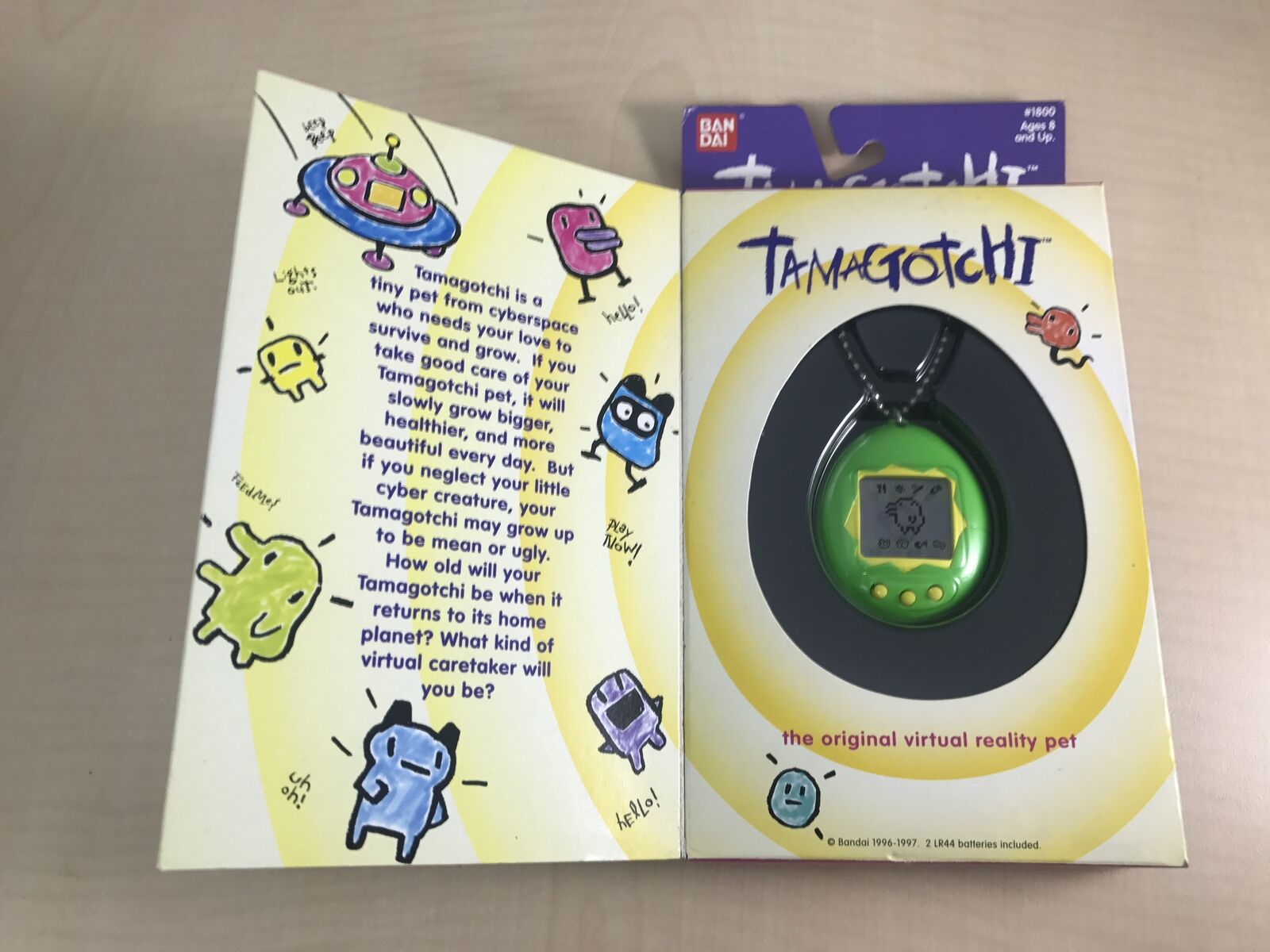 New Bandai Original TamaGotchi Green & Yellow, 1996 - 1997 English