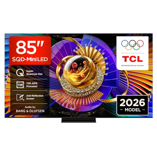 TCL 85C7L-UK 85 Inch SQD-Mini LED TV, 4K HDR 3000 nits and 1,624 dimming zones, Google TV, Dolby Vision & Atmos, Audio by Bang & Olufsen, 144Hz, Apple AirPlay 2 & Alexa (2026 New Model)
