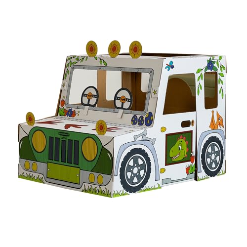 BANKERS BOX Dinosaur Truck Playhouse for Kids XL (81.5 x 79.5 x 97.7) - Colour-In Cardboard Den, FSC Certified & Recyclable, Arts & Crafts Toy - Ages 3+