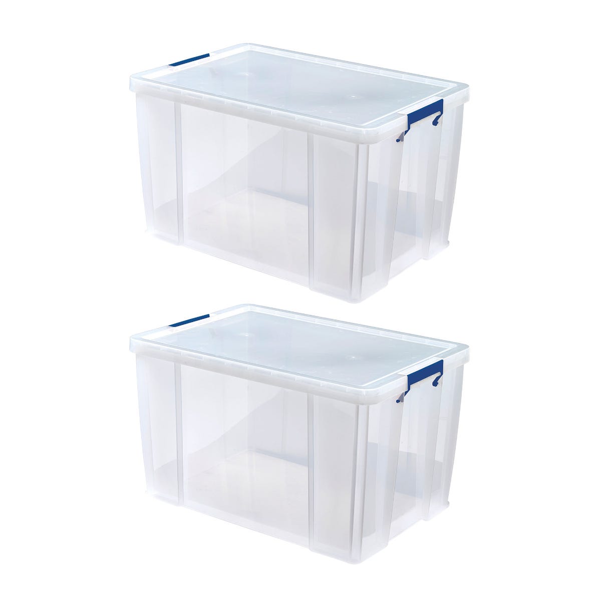 Bankers Box 85L Clear Super Strong Stackable Plastic Storage Boxes with Lids Pack of 2, none