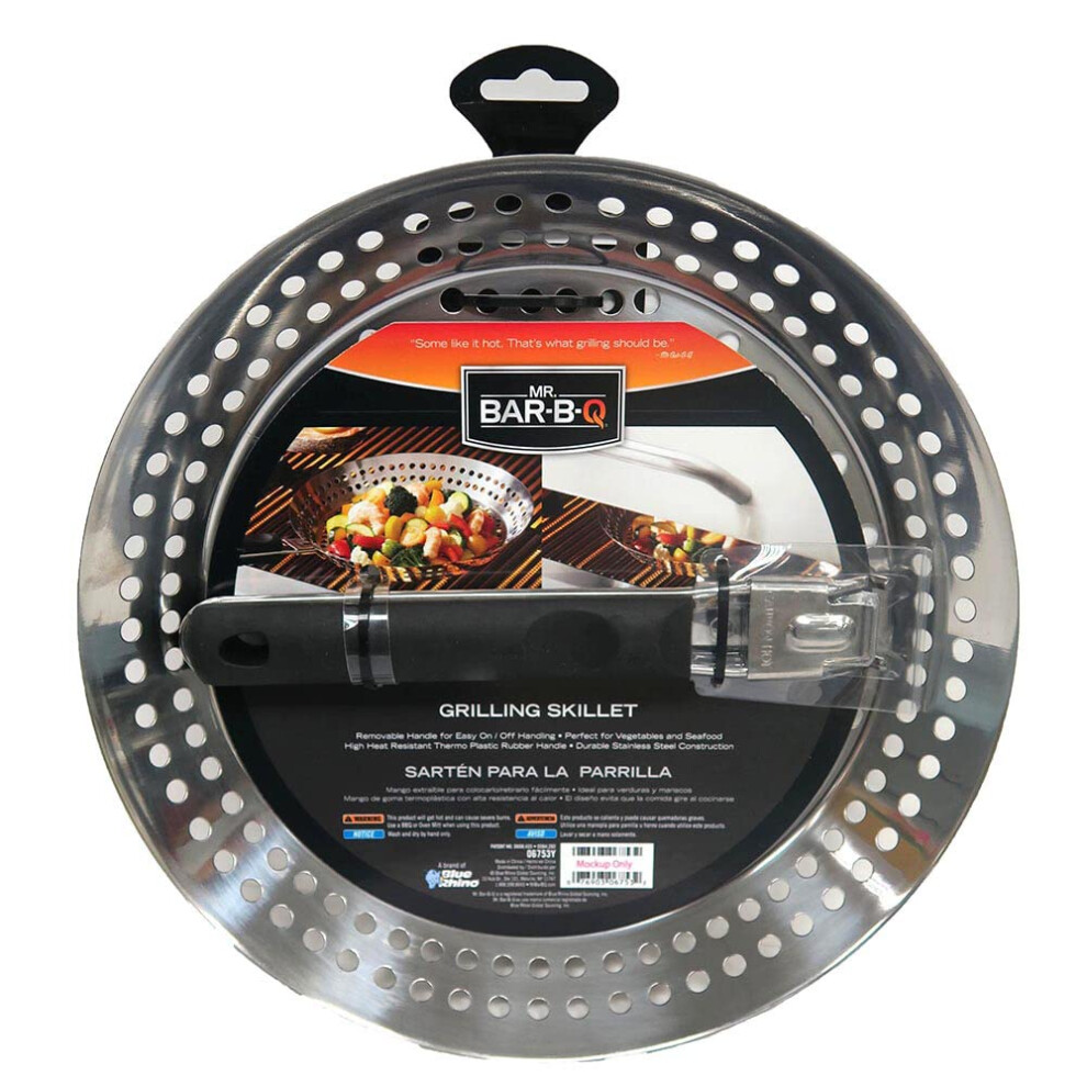 Mr. Bar-B-Q 12"""" Stainless Steel Skillet Deep Fryer Strainer for Seafood Vegetable Grill Basket w/Removable Handle Stainless Steel for BBQ Grill C