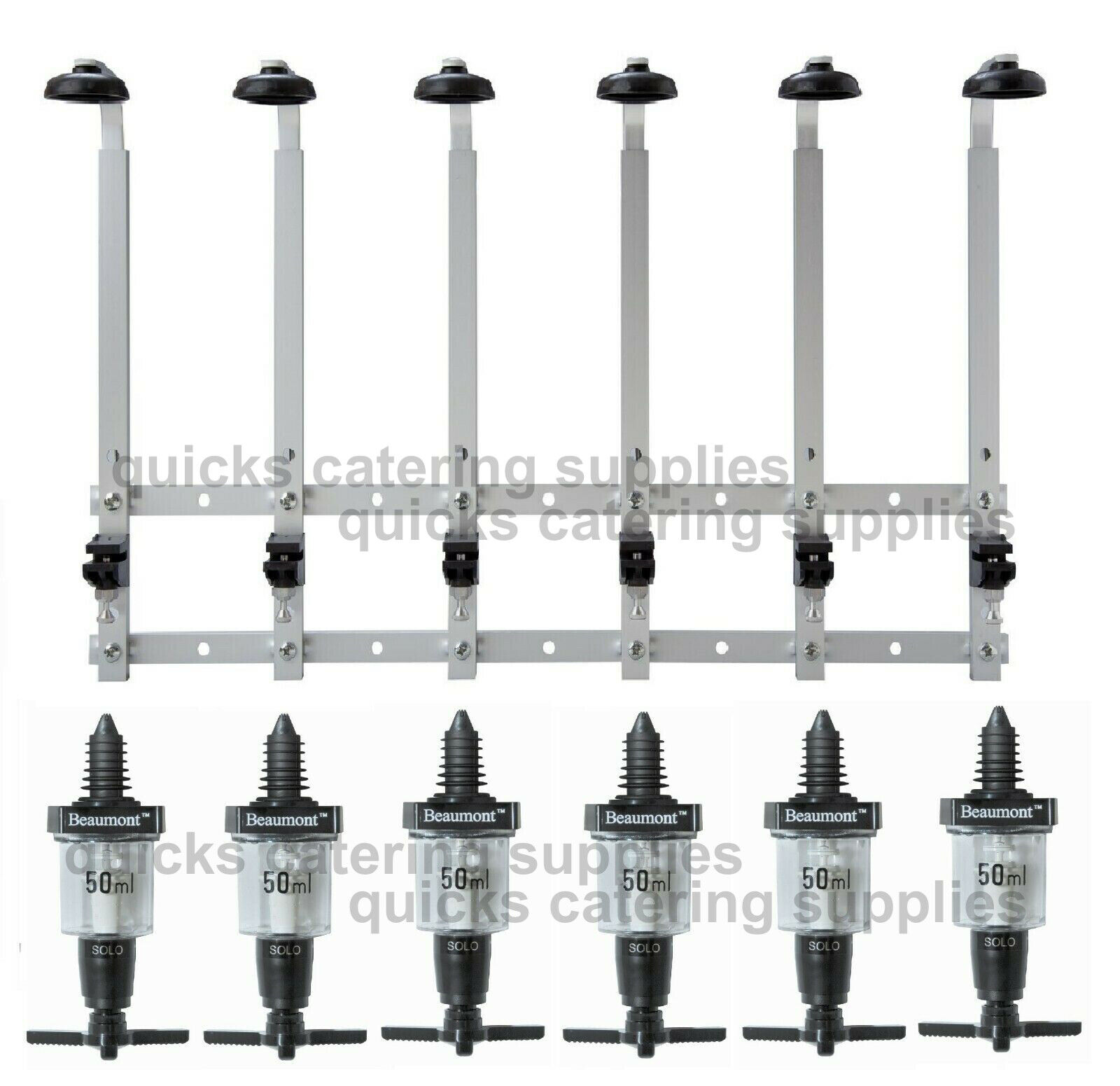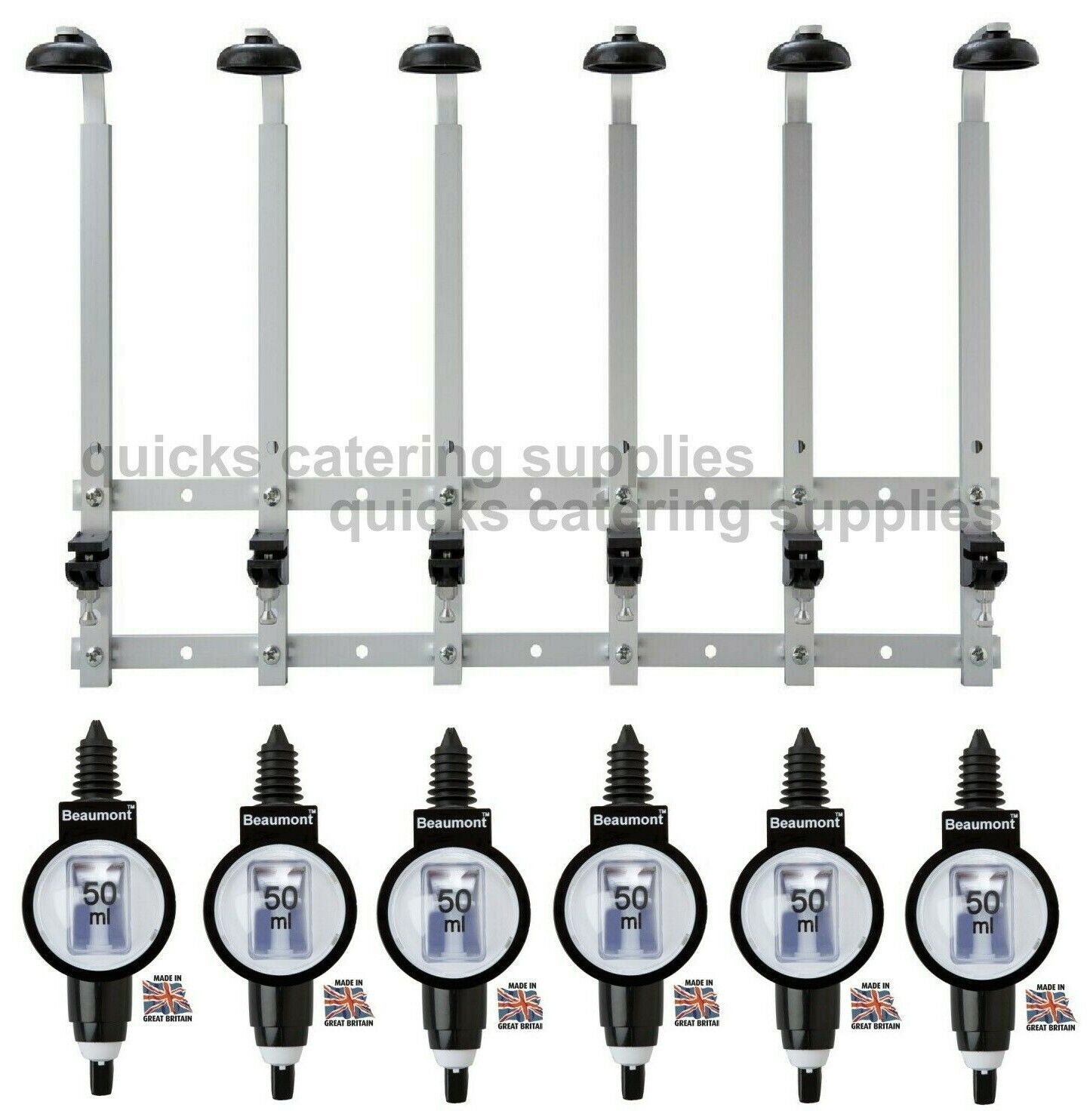 Optics Home Bar 6 Bottle Wall Bracket Rack & 50ml Beaumont Solo Spirit Measures