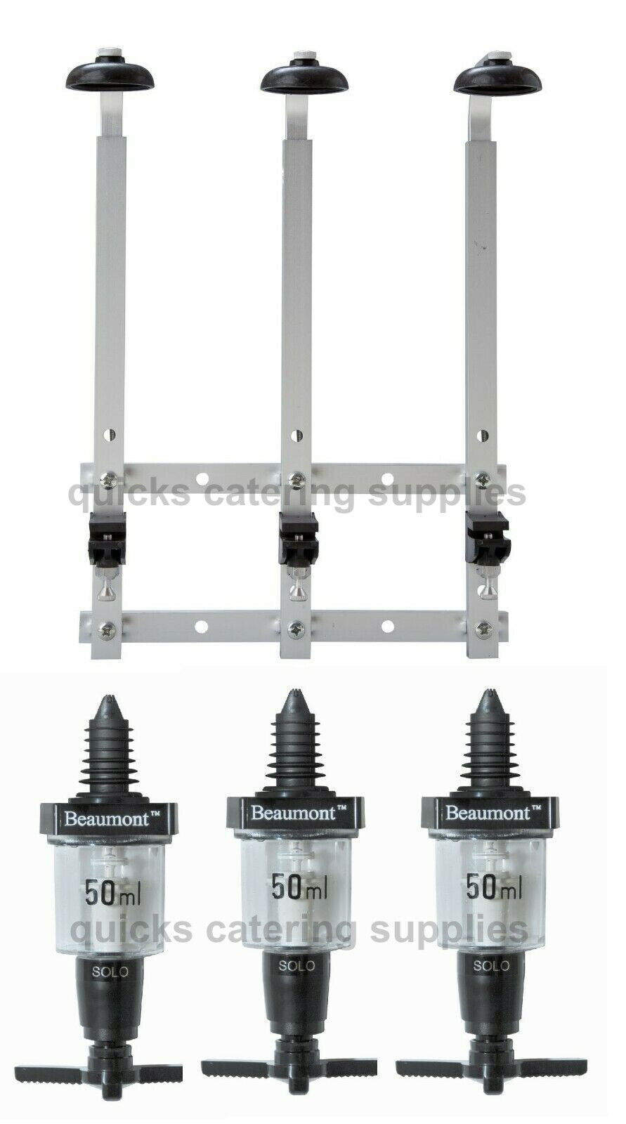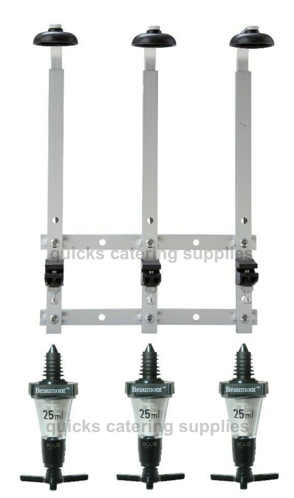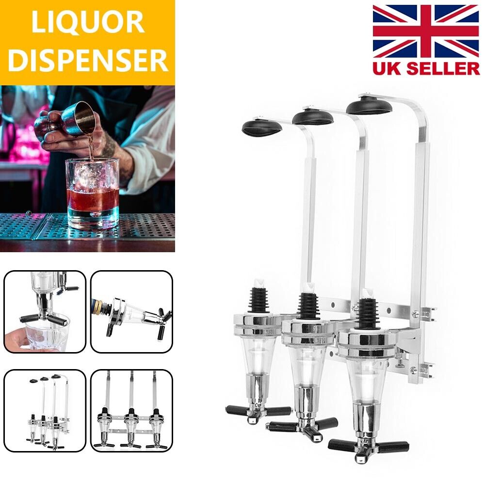 3 Bottle Stand Wall Mounted Dispenser Drinks Wine Spirits Steel Bar Optics