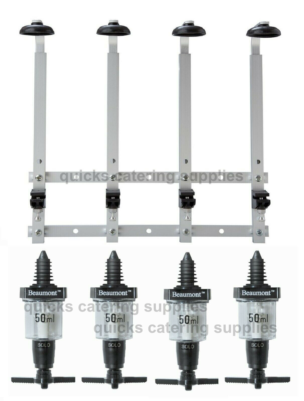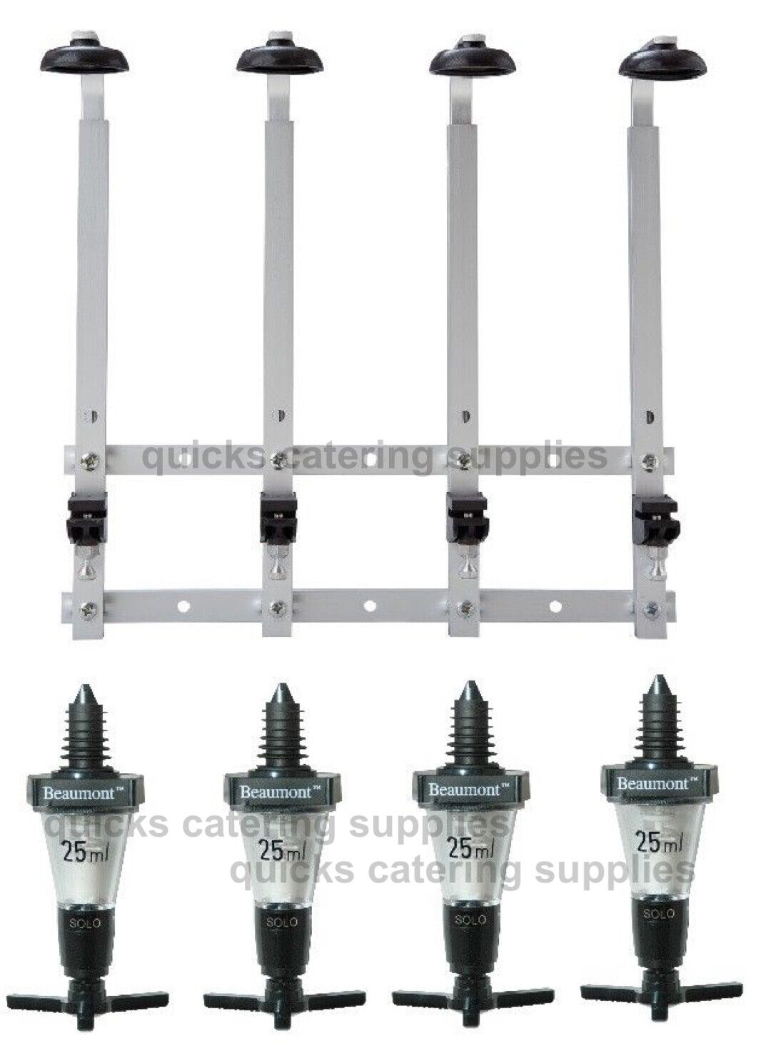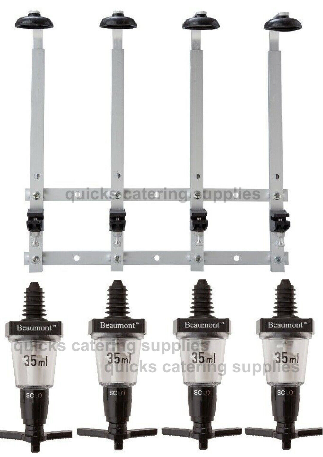 Optics Home Bar 4 Bottle Wall Mounted Bracket Rack 35ml Beaumont Spirit Measures