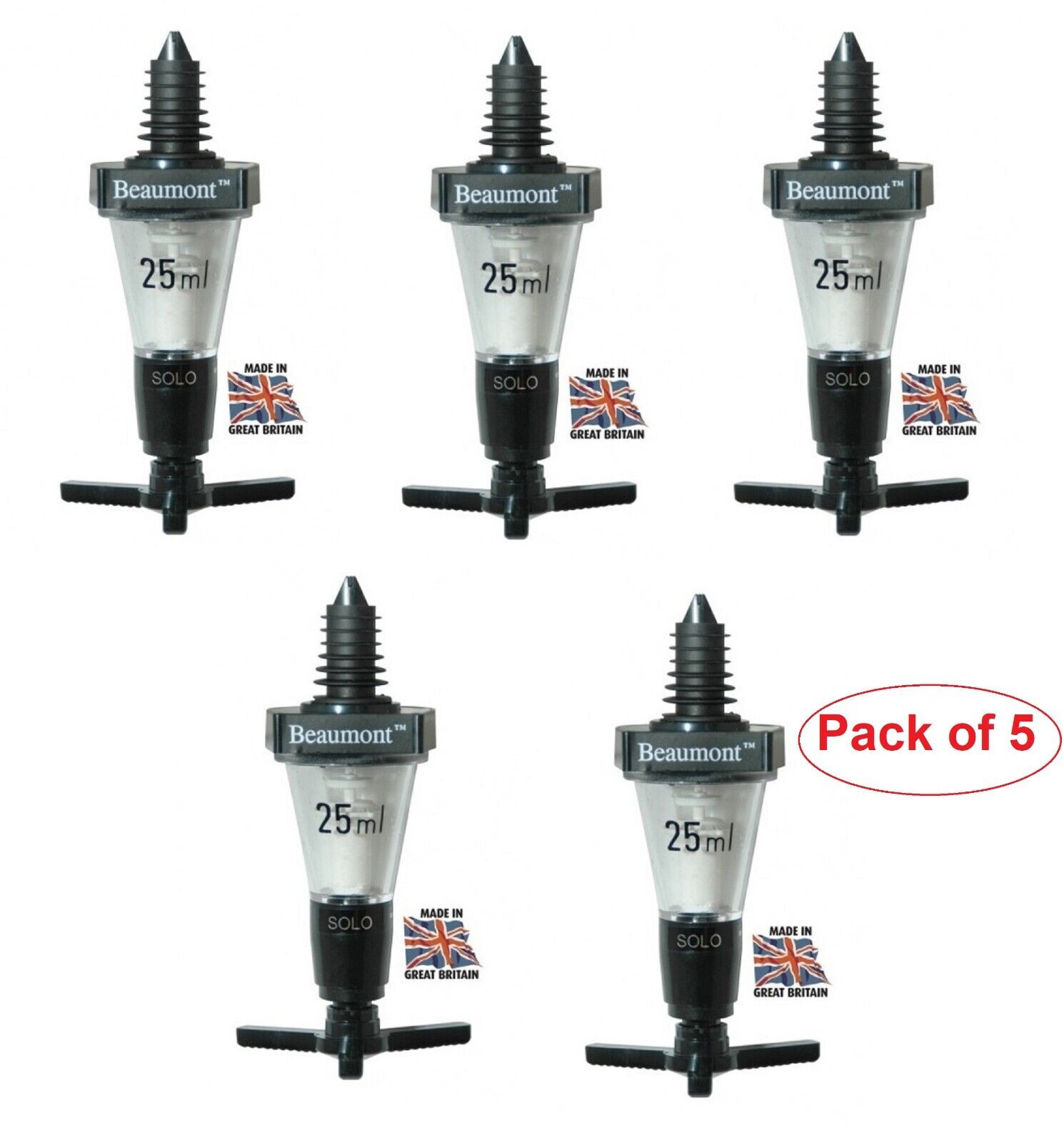 Optics Home Bar Pack of 5 x 25ml Spirit Measure Beaumont Solo Pub Dispenser
