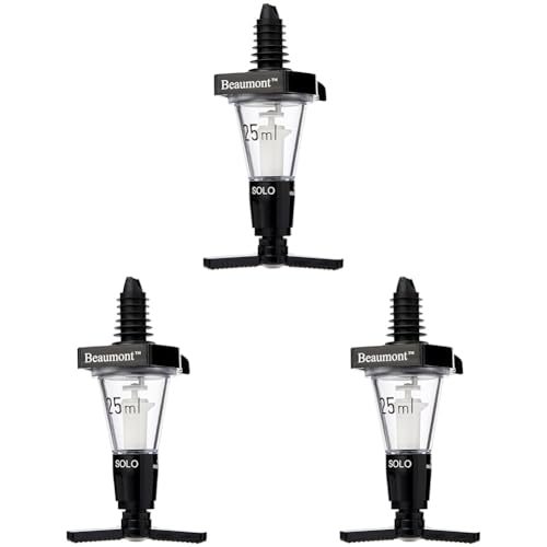 Beaumont Spirit Optics Dispenser Stamped 25ml, Black, Government Stamped, Professional Bar or Home Use, Alcohol Optics Dispenser, Precise Measurement, Leak Proof Rubber Seal, K493 (Pack of 3)