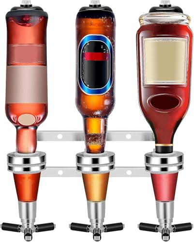 CROWNSHOP 3/4/6 Bottle Optics Stands Wall Mounted Bottle Stand Wine Spirit Drink Dispenser Bar Shot Optics Measurer for Home Kitchen Bar (3 Bottle)