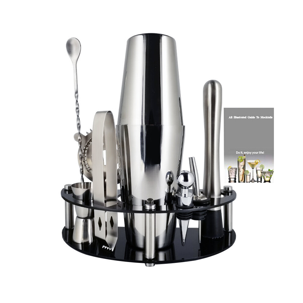 1-11Pcs Stainless Steel Cocktail Shaker Set Mixer Shakers Barware Pourer Bar Tools Boston Bartender Kit with Holder