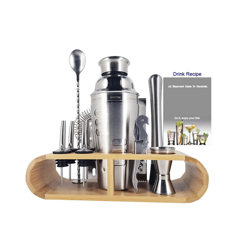 1-12 Pcs Boston Cocktail Shaker Bar Tools Set Barware Bartender Shakers Kit Jigger Mixer Muddler Pourer Spoon with Bamboo Stand