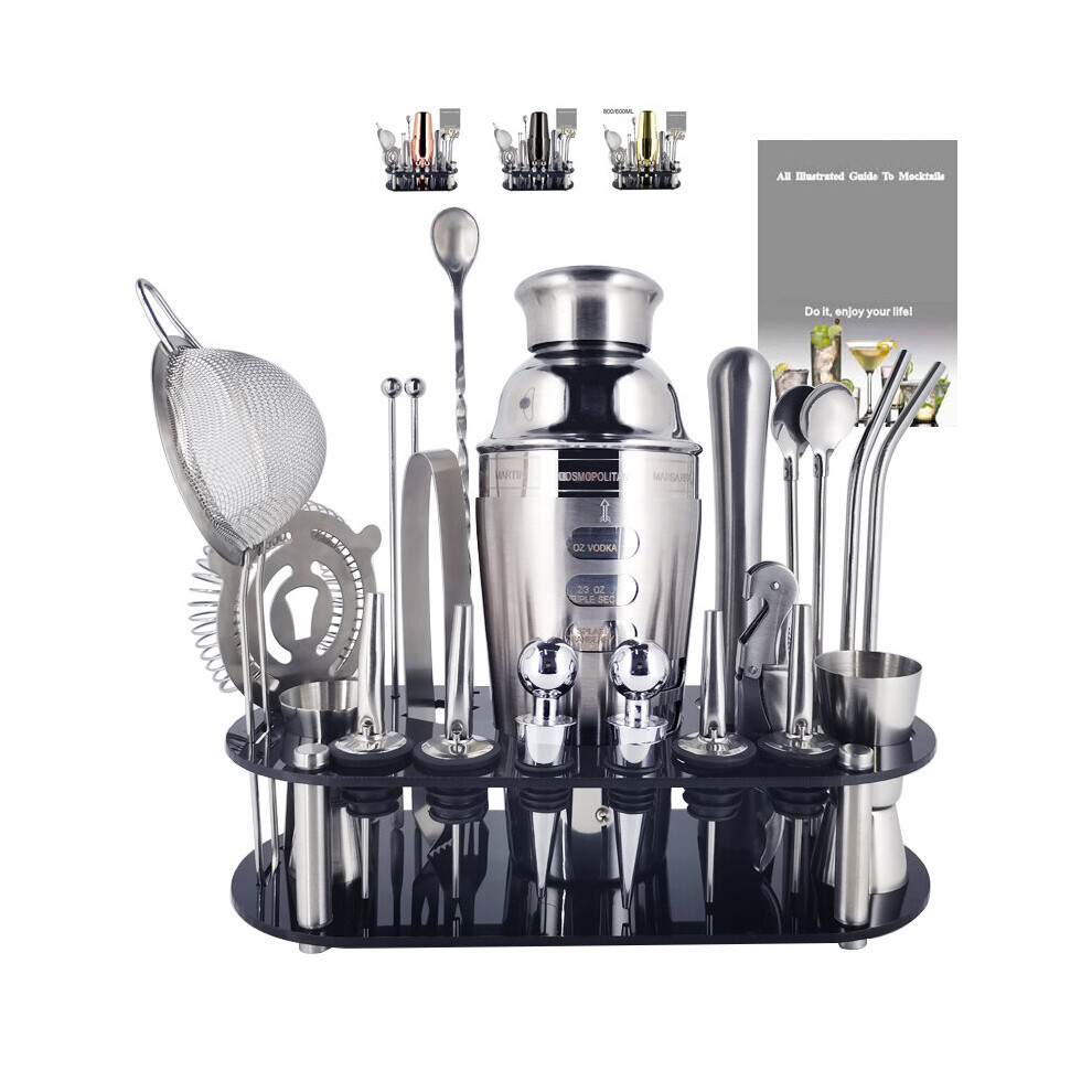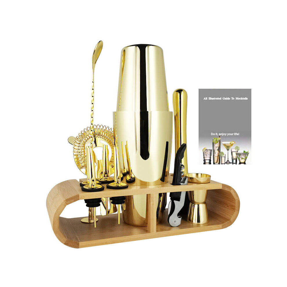 Gabrella Cocktail Shakers Set, 23PCS Cocktail Set, Cocktail Making Kit with 750ml Boston Shaker, Strainer, Jigger, Mixing Spoon, Tongs, Bottle Stoppers, Opener, Recipes for Drink Mixing, Home, Bar