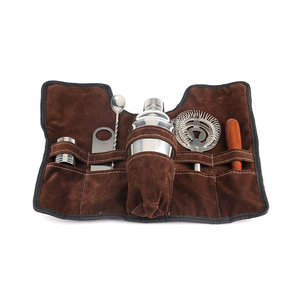 Bartender Bag for Cocktail Shaker Set, Messenger Bag with Padded Compartments for Travel Bartender Kit, Portable Tool Bag Perfect for Cocktail Stirrers and Bar Shakers (Brown)