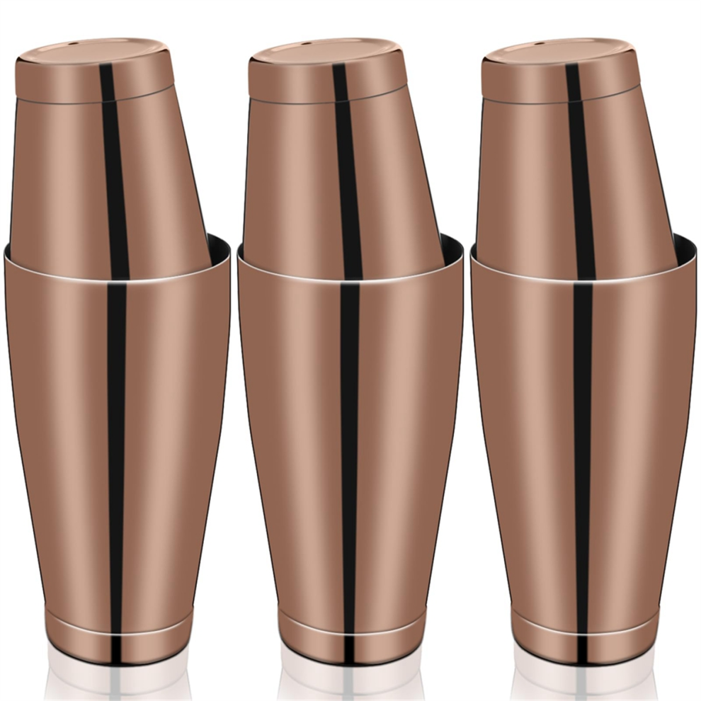 moresk-3Sets Cocktail Shakers Professional Bar Shaker Boston Shaker Set Stainless Steel Martini Shaker Drink Mixer(Rose Gold)