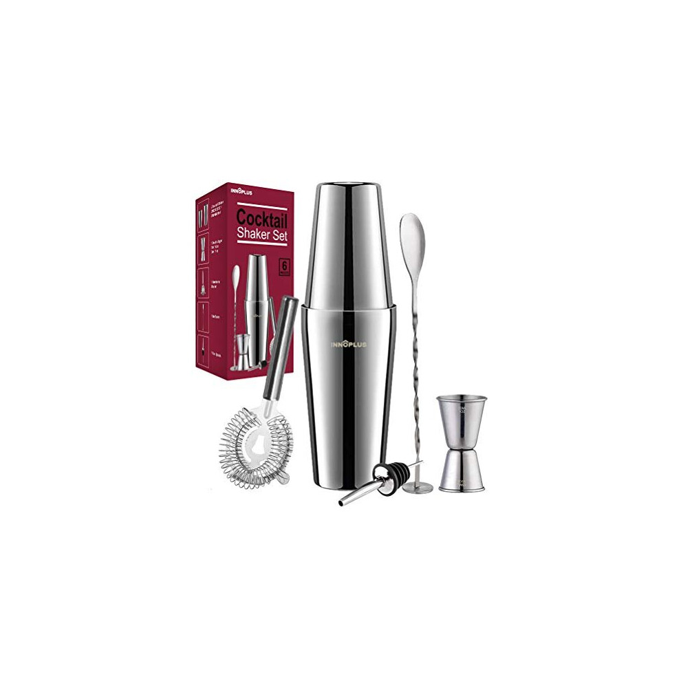 Cocktail Shaker, Cocktail Shakers 750ml, Cocktail Making Set 6 Piece, Cocktail Shaker Kit with Strainer, Double Jigger, Bar Mixing Spoon, Boston