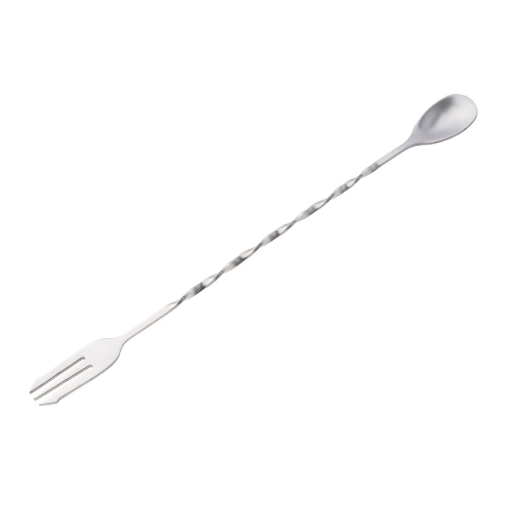 Stainless Steel Cocktail Stirring Spoon And Mixing Fork Swizzle, Twisted Bar Spoon For Shakers And Tall Glasses