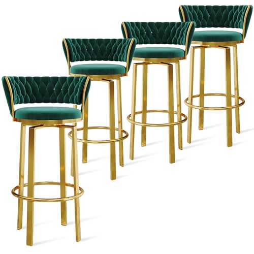 ZCEDZYSW Green Velvet Swivel Bar Stools Set of 1/2/3/4, Modern Swivel Barstools with Woven Back, Counter Height Chair with Gold Leg, Upholstered Bar Chair,1 PCS,29.5'' H(4 Pcs,75cm)