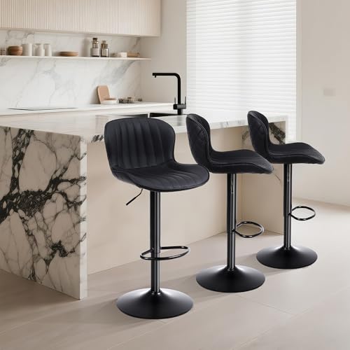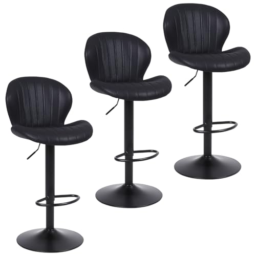 Youhauchair Bar Stools Set of 3, Swivel Counter Height Barstools with Back, Adjustable PU Leather Bar Chairs, Modern Armless Kitchen Island Stool, Black