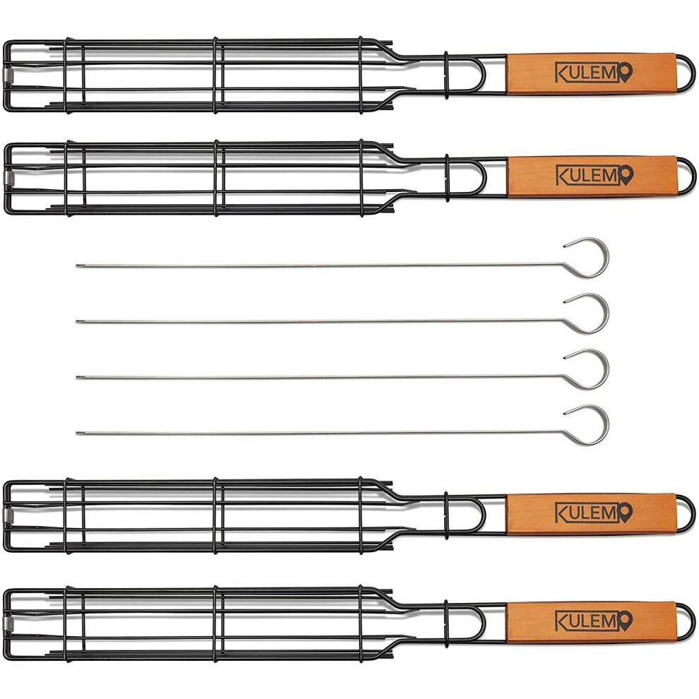 (BBQ Kebab Grilling Baskets & Skewers Set Of 4) BBQ Grilling Basket Stainless Steel Barbecue Kebab Grill & Skewers