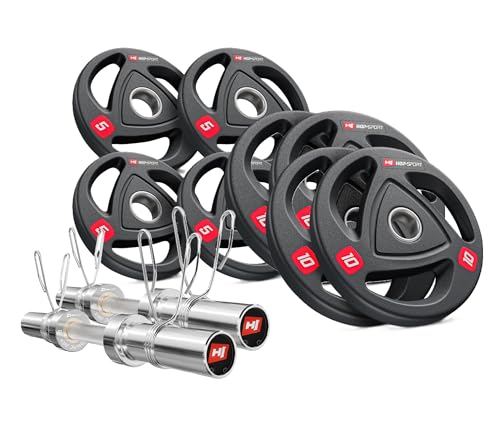 Hop-Sport 60 kg Olympic Strength Weight Set – 2× 50 cm Olympic Barbells with Rotating Sleeves + Plates (4×10 kg, 4×5 kg) – Durable Barbell and Weights for Strength Training
