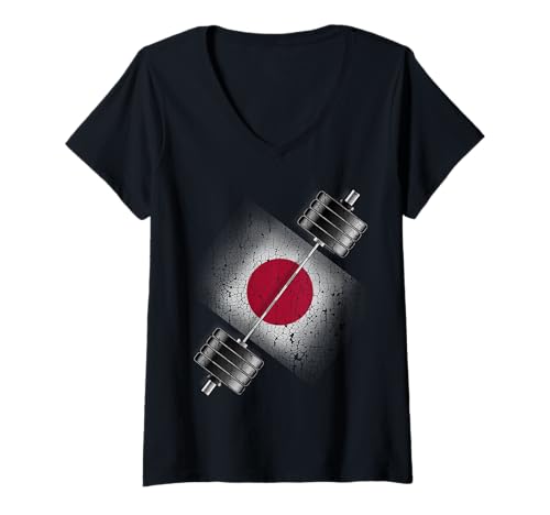 Womens Barbell Weights Japanese Flag Powerlifting - Japan V-Neck T-Shirt