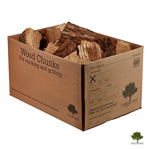 Oak Wood Chunks 7-9kg for Smoking Food (Eight Great Flavours Available) - Kiln Dried Wood - Small Chunks for Smoking Food on BBQ’s/Barbeques. Large 25 Litre Box -(Oak)