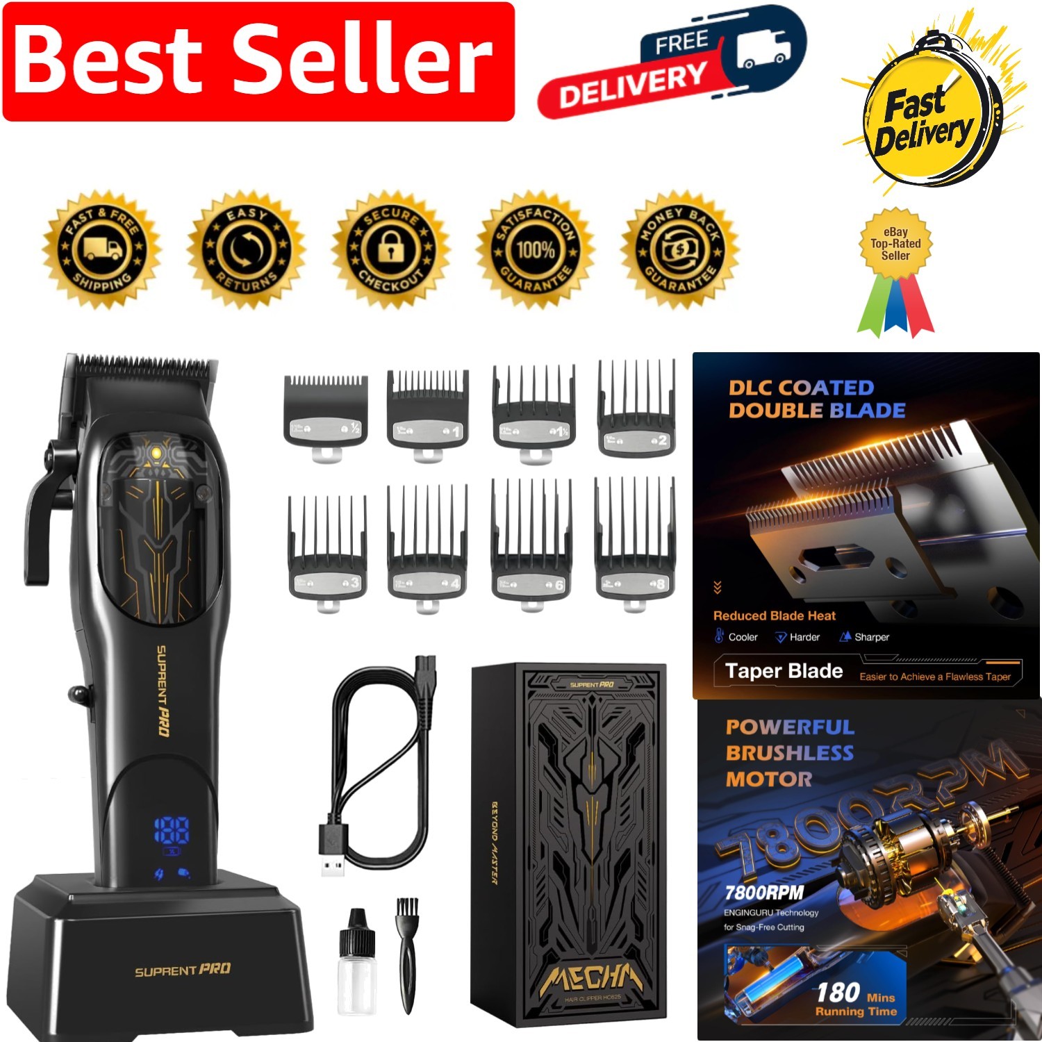 Professional Barber Hair Clippers - DLC Coated Ceramic Blade with Charging Base