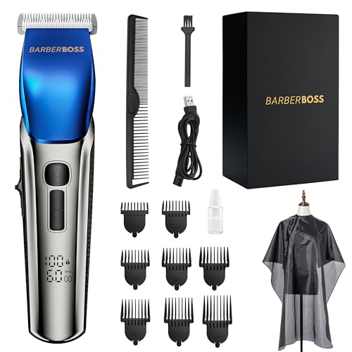 BarberBoss Cordless Hair Clippers for Men – Beard & Hair Trimmer Set with LED Oil Display, 8 Comb Attachments, Precision Blades for Face and Hair Grooming