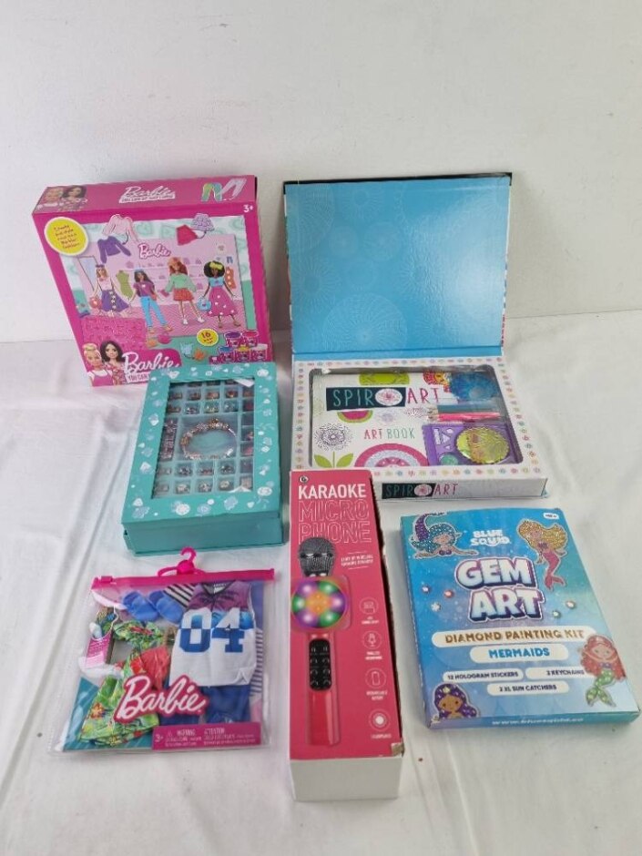 6x Bundle Girl's Toys Karaoke Microphone Gem Art Barbie Clothes Bracelet Beads Spiroart Dough Set