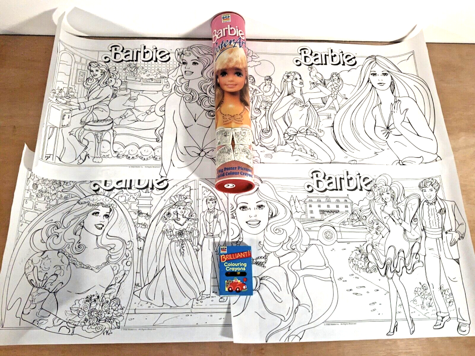Barbie Art Poster Tube Set 1988 - 4 Posters & Crayons - NEW Vintage GCP Mattel