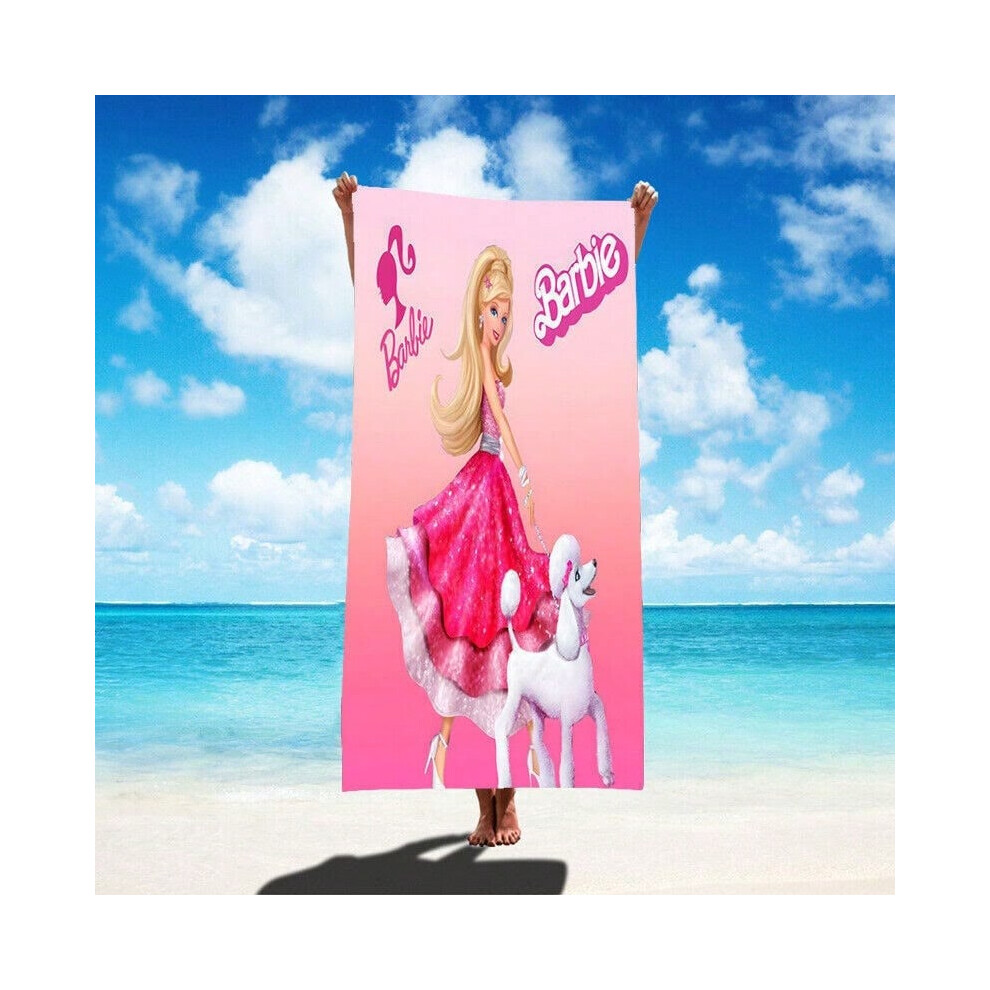 (DL24051301L, 80*160CM) Barbie Doll Beach Towel Microfiber Bath Towel Beach Towel