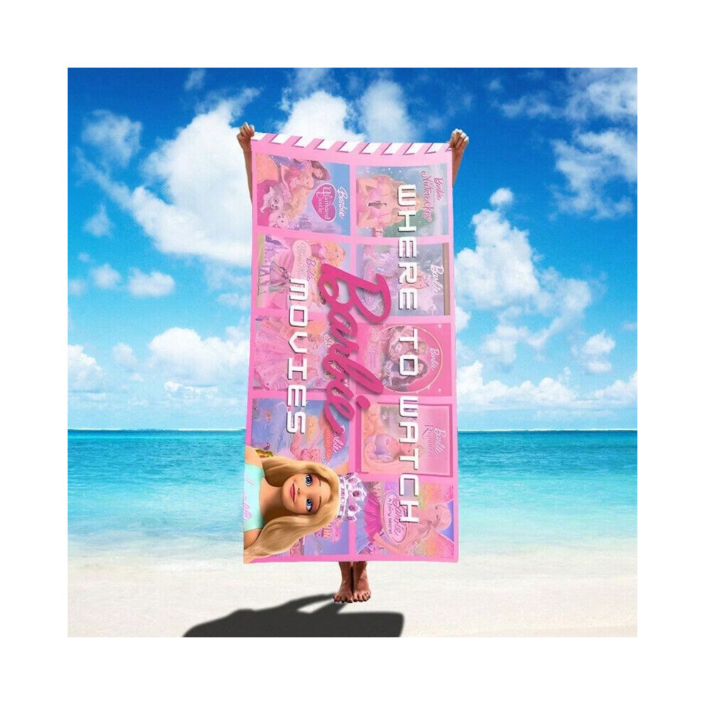 (DL24051301K, 80*160CM) Barbie Doll Beach Towel Microfiber Bath Towel Beach Towel