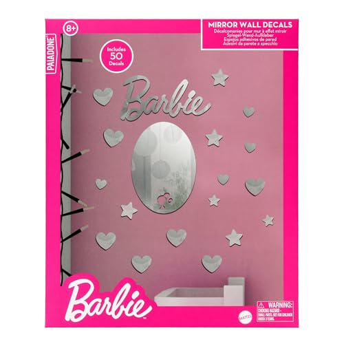 Barbie Official Licensed Mattel Mirror Wall Decals, Heart and Star Bedroom Decor and Gift for Girls, Doll Toy and Room Accessory | Paladone